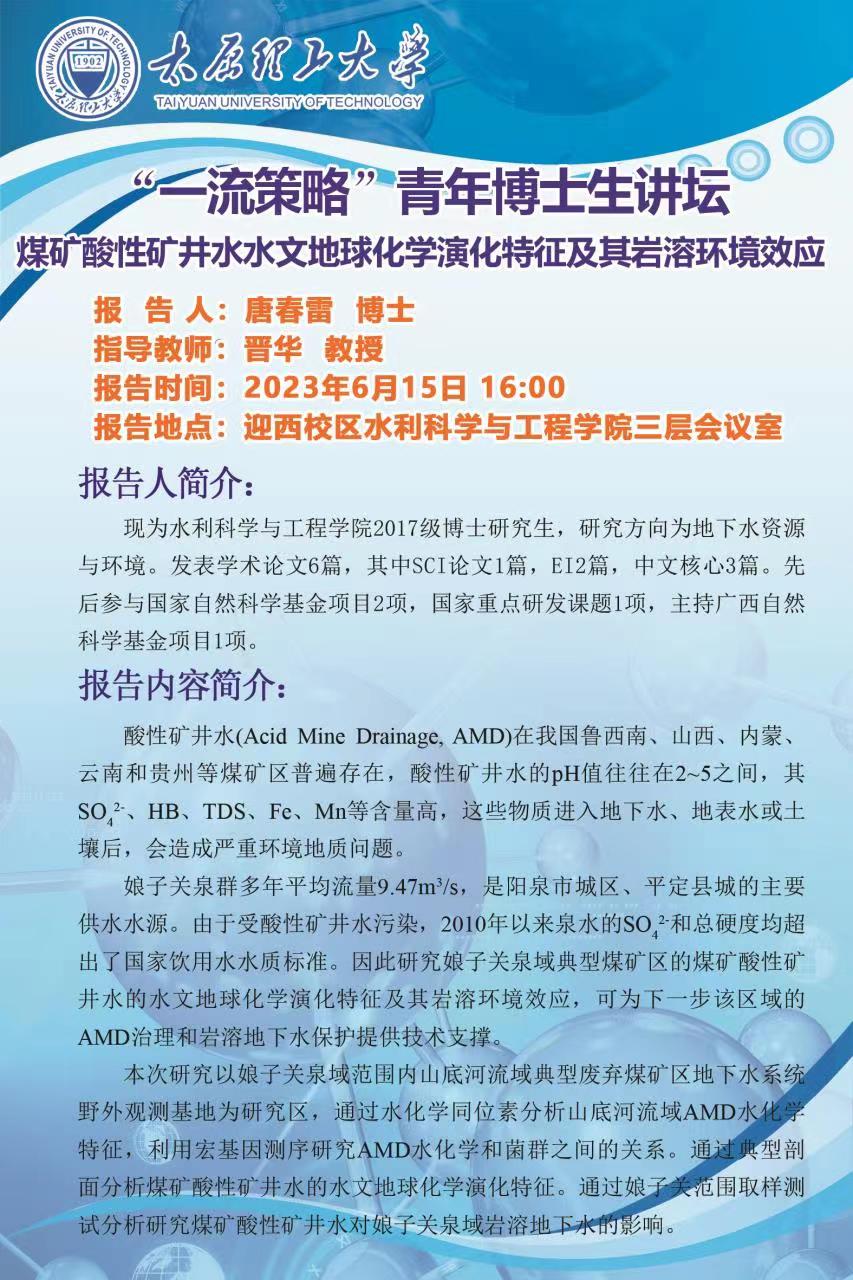 太阳成集团tyc122ccvip官网入口“一流策略”青年博士讲坛通知--唐春雷 博士
