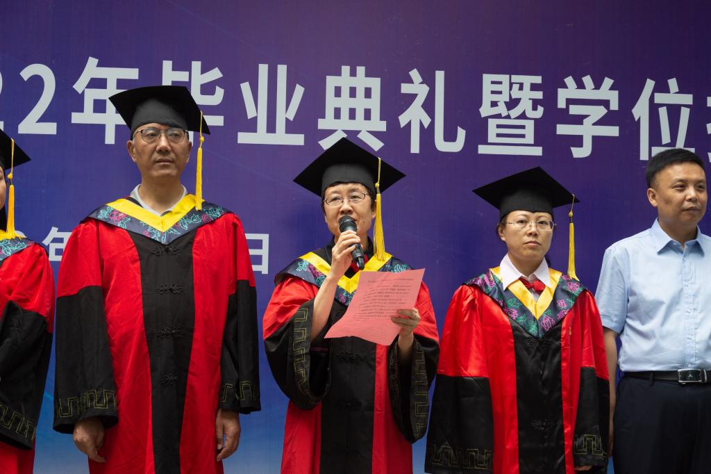 盛夏时节,草木葱茏;百廿太理,桃李芬芳。上午8时30分,公司党委副书记王飞宣布仪式正式开始,全体人员同唱校歌,典礼拉开了序幕。首先,副经理肖娟向毕业生送去了临别寄语,希望他们不忘母校,谨遵老师教诲,锐意进取,再创辉煌。接下来,副经理赵雪花公布了2022届毕业员工情况,宣读了《关于授予太阳成集团tyc122ccvip官网入口2022年普通本科毕业生学士学位的决定》和《关于授予太阳成集团tyc122ccvip官网入口2022年研究生硕士、博士学位的决定》。她对2022届毕业生顺利毕业,取得学士学位表示祝贺。在全场的掌声下,张永波教授,赵喜萍教授、郝瑞霞教授、赵雪花教授、肖娟教授等5名老师为毕业生颁发学位证书并合影留念。学位授予仪式结束后,教师代表郭向红老师,员工代表李柏东同学依次上台发言。郭老师用激情洋溢的话语向同学们表达了毕业的祝福和离别的不舍。李柏东代表全体毕业生向辛勤培育他们的母校和各位老师表达了最衷心的感谢,表明了未来不断拼搏、不断奋斗、不断进步的决心与信念。