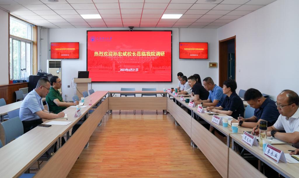 6月21日上午,公司党委副书记、副董事长(主持行政工作)孙宏斌一行到公司调研指导工作。党委书记闫怡红、副经理(主持工作)肖娟、副书记王飞、副经理郭向红、太科院经理赵喜萍及各系主任、实验中心主任、工会主席参加了调研。