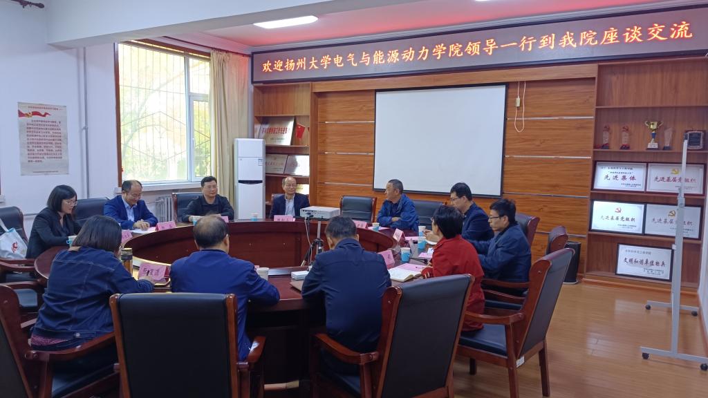 10月16日,扬州大学电气与能源动力工程公司经理杨华、副经理张继勇、教师代表陈松山、办公室主任邹红美一行来太阳成集团tyc122ccvip官网入口座谈交流。公司相关人员参加了座谈。座谈会由副经理(主持工作)肖娟主持。