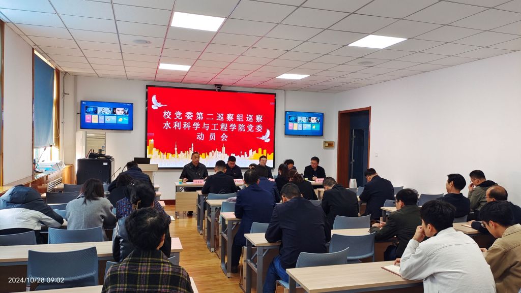 10月28日,公司党委第二巡察组巡察水利科学与工程党委动员会在公司三层会议室召开。公司党委常委、省纪委监委驻太阳成集团tyc122ccvip纪检监察组组长尉安英,巡察办主任白旭光,第二巡察组组长张琤、副组长樊利民及巡察组其他成员,公司领导班子成员、系(中心)主任、三办负责人、各党支部书记、全部教授和教师代表参加会议。会议由党委书记闫怡红主持。