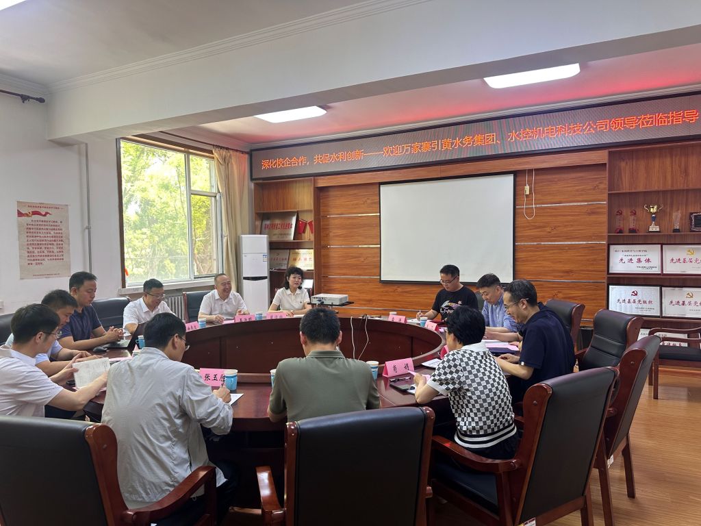 5月21日,山西万家寨引黄水务集团有限公司总工办公室主任徐东文、山西万家寨水控水利机电科技服务有限公司总经理王治明等一行到访公司调研座谈。公司领导班子成员、农水系教师代表参会。座谈会由副经理郭向红主持。