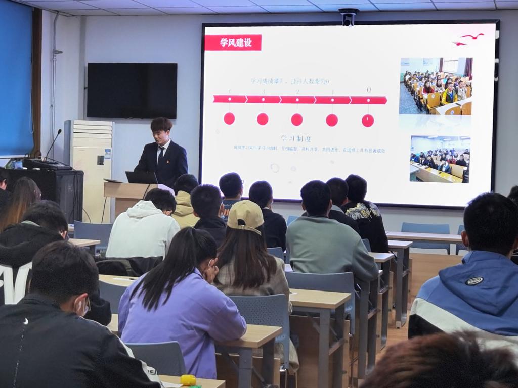 参加此次评选的10个的团支部书记依次上台演讲,他们分别从政治建设、组织基础、工作效果、学风建设四个方面对上一年度的团支部工作进行了具体的阐述,通过PPT、视频等方式展现了各支部团结积极、奋进向上的精神风貌。也着重突出了注重加强青年思想政治引领和团员青年的政治教育的重要性。