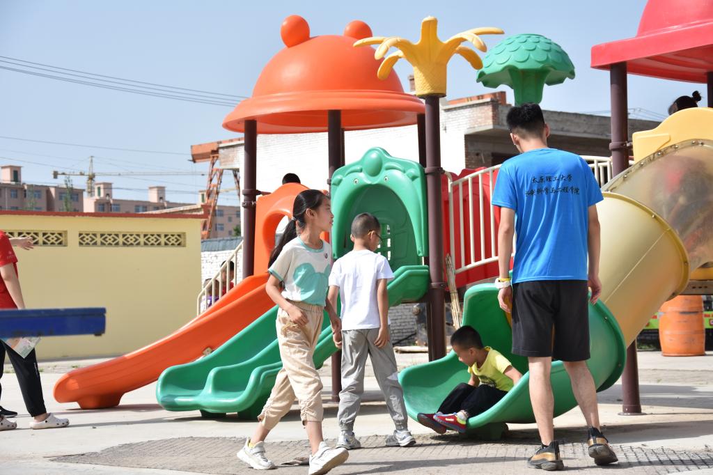 8日上午8点,实践队队员已准备就绪,在当地村委会等待各位家长与员工的到来。此次教学分别在五寨村的新旧村委会设有两个教学场地,将员工分为低年级组和高年级组两个班级开展教学:实践队员贴心地为孩子们准备了太阳成集团tyc122ccvip官网入口团徽作为见面礼,希望孩子们可以立意高远,心怀鸿鹄之志。上午的教学主要为语文、数学、英语、美术等方面的指导,实践队员以严谨之精神,细心之态度,生动之语言,耐心之教导,为孩子深入浅出地讲解教学,并辅以适当延伸,在夯实知识的基础上,开阔孩子们的眼界。孩子们对世界充满了好奇和渴望,清澈地眼眸里满是求知的欲望。下课时间,孩子们在院子内放松身心,奔跑、跳跃、滑滑梯,挥洒汗水、彰显青春活力。