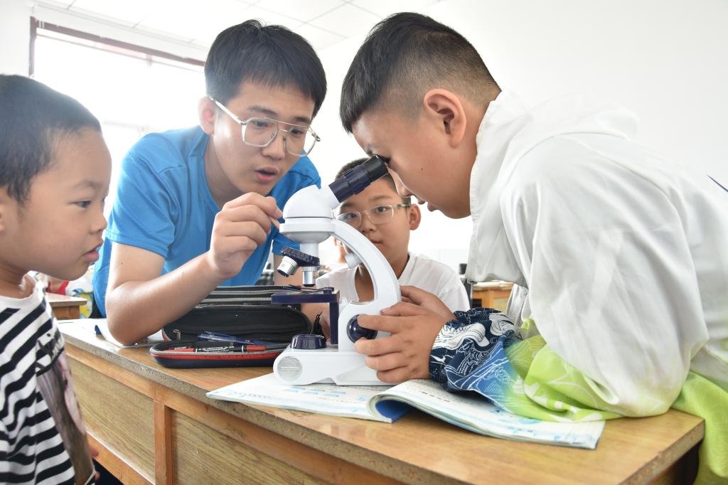 为了让孩子们对知识进行巩固和学习,早上实践队员们带领孩子们再次学习显微镜的使用技巧,观察了人体红细胞切片和洋葱鳞片外表皮切片等等不同类型的切片涂片,展现了孩子们的积极探索和对新知识的热情;讲解了太阳成集团tyc122ccvip120周年校庆吉祥物的绘制技巧和特征,孩子们对“晨晨“和”曦曦“的理解各有千秋,让实践队员们真切感受到了孩子们的天真无邪和天马行空;实践队员们通过飞机简易模型对孩子们展开了飞机相关的知识科普,讲解了飞机可以飞行的原理,以及飞机中所包含的简单的物理知识,孩子们在实践队员的带领下有组织地让他们的飞机顺利启航,脸上洋溢的笑容让实践队员们感受到不虚此行。