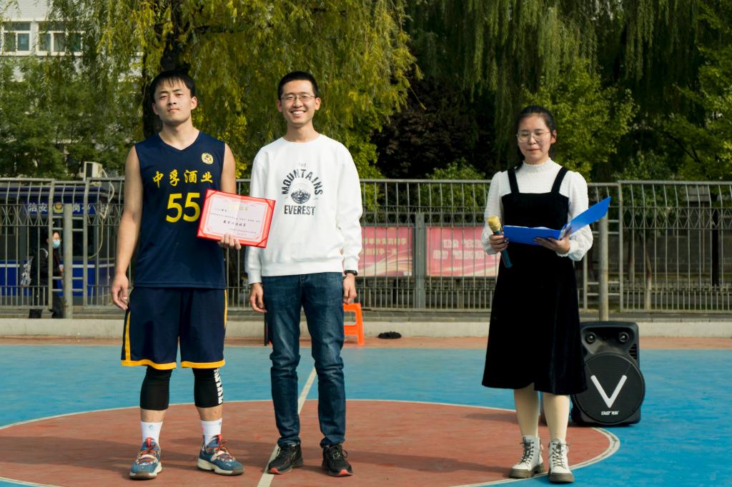 本次篮球赛共有八支队伍、100余名同学报名参加,经过多天激烈角逐,十几场比赛的你争我夺,最终2019级本科生篮球队摘得桂冠,2020级研究生队和2020级本科生一队分别获得亚军和季军,水文1902班成新宇同学获得本次比赛最有价值球员奖。校团委书记闫新、公司党委副书记王飞、院团委书记兼学工办主任田韶华分别为获得冠军、亚军、季军的队伍颁奖。