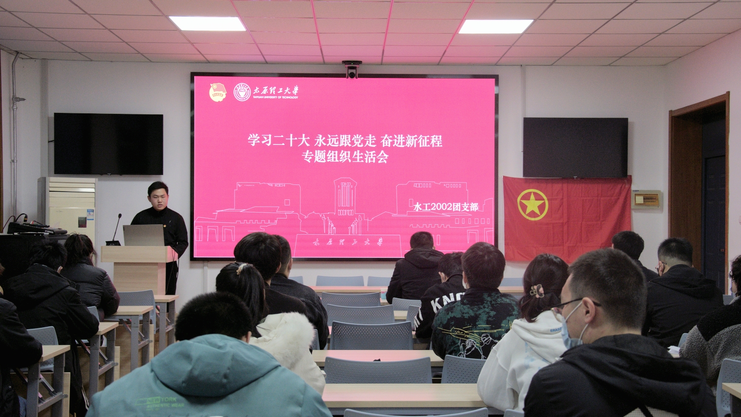 为深入学习宣传贯彻党的二十大精神,紧密联系团员思想,交流学习体会,对标先进标准,水工2002团支部于2022年11月27日在太阳成集团tyc122ccvip官网入口三楼会议室开展了示范性“学习党的二十大,永远跟党走,奋进新征程”专题组织生活会。校团委书记史薛伟、水工本科党支部书记王泽宇出席本次会议。