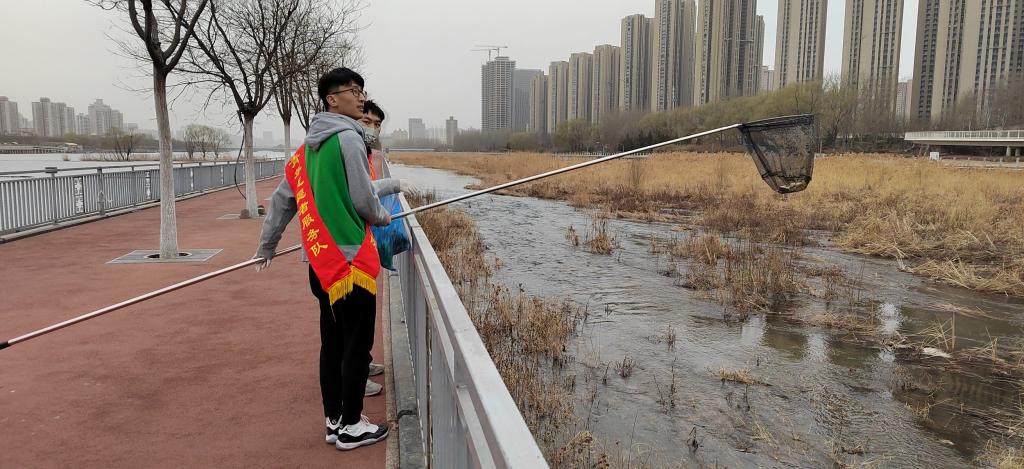 3月25日,十几名志愿者在汾河沿岸开展捡拾、打捞河道周边垃圾,保护生态环境宣传等志愿服务活动。他们分成小组,分别在沿河步道附近、周边草坪以及汾河浅滩区域开始捡拾行动,志愿者们手持打捞网、垃圾袋等工具,对沿河周边积存的塑料袋、饮料瓶、烟头等垃圾进行清理。